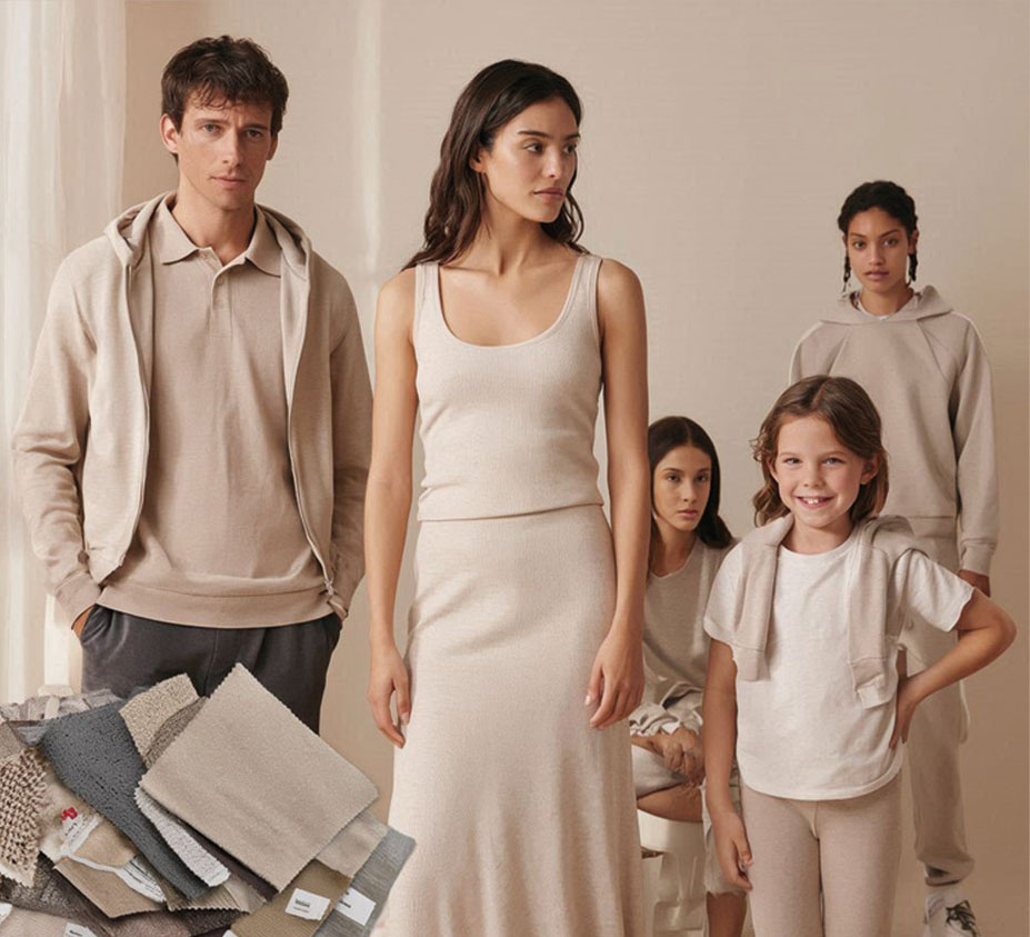 rib, piqué, fleece, slub jersey, modal, viscose, spandex blends, and performance knits across all GSM ranges.