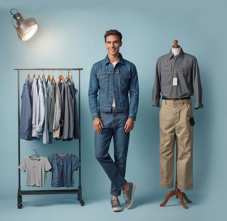 Fabrics include rigid and stretch denim, canvas, twill, poplin, sheeting, oxford, chambray, and cotton blends sourced locally and internationally.
